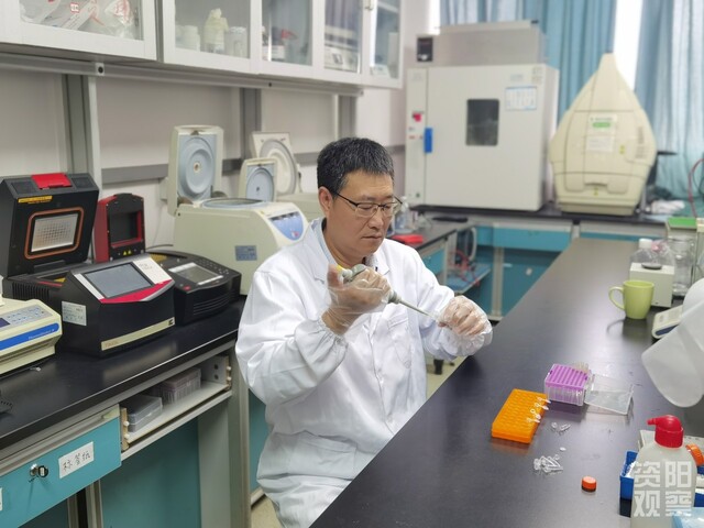 赖松家教授在实验室做实验。