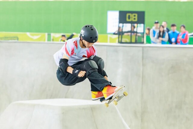 中国队豪取6金,包揽碗池全部4金。12岁的山东小将孟令妍夺得女子碗池冠军,赛后直言:“我给自己打90分,目标是参加洛杉矶奥运会!”陈烨在男子碗池中反超夺冠,引爆全场。街式项目中,韩国选手李俊胜、申智燏分获男女冠军,中国队王腾赫、朱沅铃收获亚军。“滑板就是自由,就是挑战自己。”一位泰国少年选手笑着说,膝盖上贴着创可贴,眼里全是光。