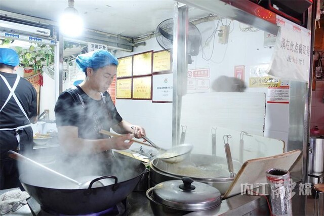 “内江人吃面,不是非得红油。”廖勇一边搅汤一边说。他的动作不快不慢,二十八年练出来的节奏。