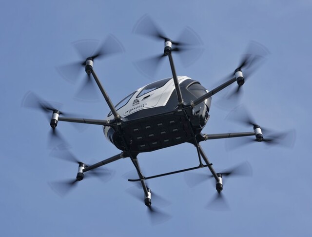 2月13日,成都市主城区首次进行eVTOL载人验证飞行。 新华社记者刘坤 摄