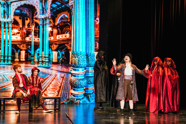 《第十二夜》以一场海难为缘起,讲述了薇奥拉女扮男装、机缘巧合步入公爵府后,引发的一系列身份错位、机缘巧合的温情故事,既有诙谐幽默的情节铺陈,也有对爱情、真诚与自我身份的细腻思考,是莎士比亚最具代表性的喜剧作品之一。演出现场,演员们以细腻传神的表演,将角色的情感起伏与性格特质展现得淋漓尽致:薇奥拉的聪慧忠诚、奥丽维亚的端庄炽热、奥西诺的忧郁浪漫,被演员们演绎得入木三分;而管家马伏里奥的刻板虚荣、弄臣费斯特的睿智诙谐,更带来诸多笑点,整场演出张弛有度、引人入胜,让观众在欢笑与暖意中感受跨越四百年的戏剧魅力。