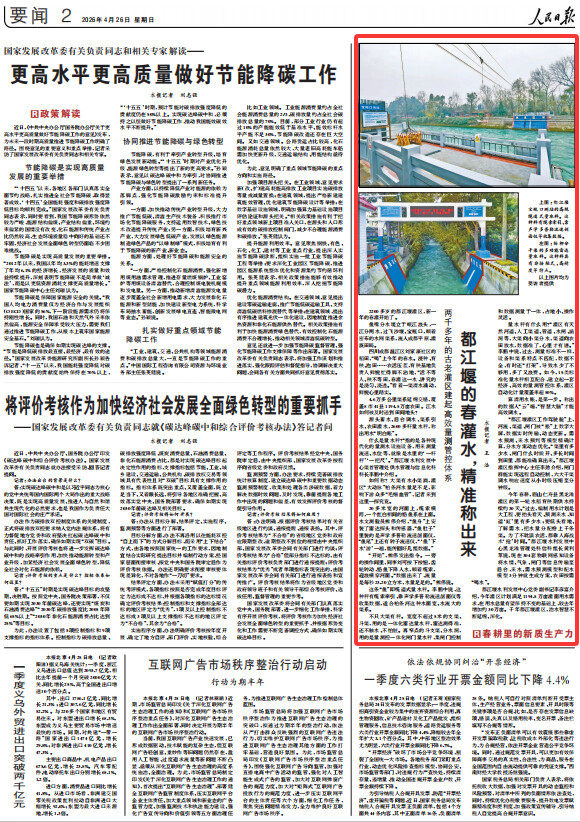 都江堰水利发展中心党委副书记李彦富介绍,今年灌区计划满足1194.5万亩灌面用水需求,在用水总量有望保持不变的基础上,较去年增加约30万亩。千年都江堰灌区,治水智慧不断延绵、深化。