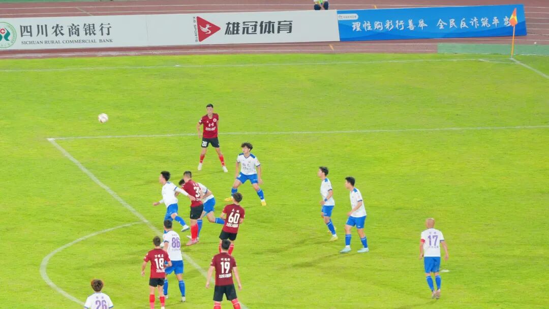 第49分钟,自贡队攻入南充队禁区,球被对方球员解围后,袁政涵大脚长传,对方守门员扑球后连球带人滚入门线,自贡队再次领先。第55分钟,南充队边路传中后,自贡队后防出现漏人,南充队前锋抓住机会射门得手,两队再次回到同一起跑线。