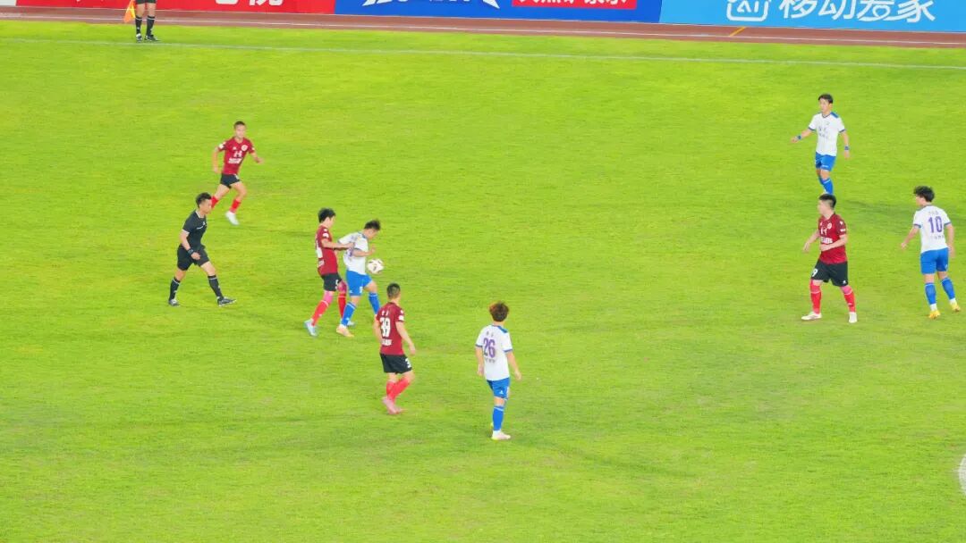 上半场,自贡队发起猛烈攻势,进攻端明显较上一轮更有章法,在南充队门前频频制造险情。比赛第17分钟,自贡队推进至前场,随后妙传边路,埋伏在附近的曾勇快速插上后,向中路内切推射破门,为自贡队先下一城。比赛第28分钟,南充队展开攻势,在禁区附近突施冷射,自贡队后防线乱作一团。此时,南充队的前锋突入门前补射得手,将比分扳平,两队回到同一起跑线。