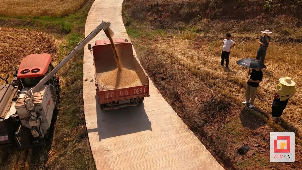 另一片坡地上空,植保无人机展翅翱翔,高效完成病虫害防控。从空中精准飞防到地面高效收割,从秸秆资源化利用到土地深耕整地,从粮食即时装车到下茬耕种准备,整套作业环环相扣、流畅高效,彻底打破丘陵地区 “地块碎、作业难、效率低” 的桎梏,贡井区农业农村局及桥头镇相关领导,各村书记、文书、组长及种植大户齐聚田间,沉浸式见证丘陵粮油生产全程机械化的震撼场景。
