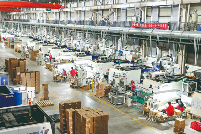 企业智能车间正开足马力生产订单产品。(资料图片)