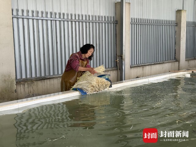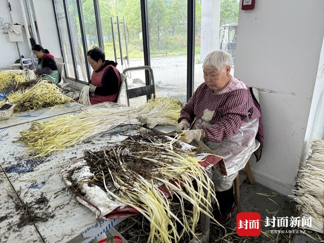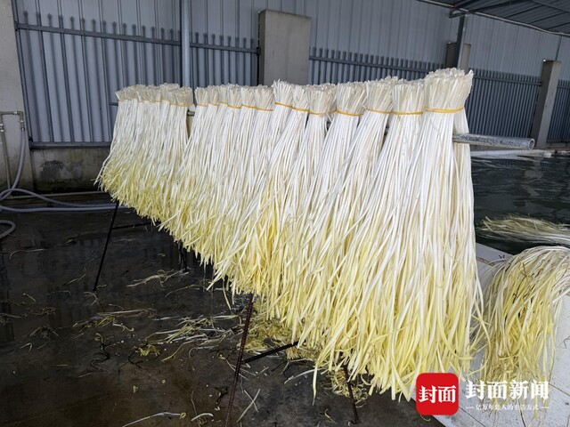 走进郫都区的一家韭黄加工基地,车间里一派忙碌景象,工人们正坐在分拣台前,处理着刚从地里运来的新鲜韭黄。郫都韭黄产业专班工作人员李明星介绍,这是韭黄加工的第一道工序,行话叫“干撕”。