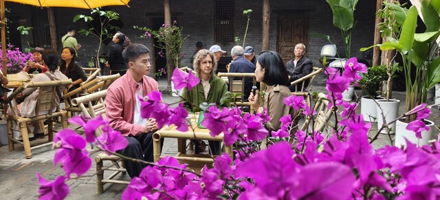 “江喃先生情系青龙、结缘老街,将百年老宅院匠心改造,融川茶雅韵、素食文化于一体,这不仅是一间茶馆, 更是中外文化交流的新平台。”青龙街道龙都社区党委书记王梅介绍,青龙老街作为眉山历史文化街区,目前还保留着“九街十八巷”的传统格局,如今因为江喃的到来,在传承保护的基础上,有了新的业态。茶馆里飘出的茶香,吸引着越来越多的人走进这条老街。